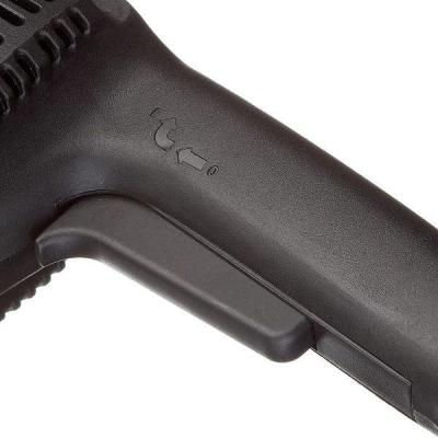 Машина имеет конструктивные особенности, такие как защитный кожух, который защищает от крошки и опилок при работе. Шпиндель имеет размер M14, а посадочный размер составляет 22.23 мм.