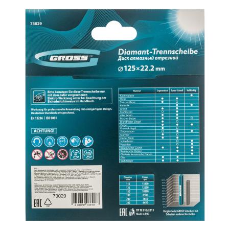 Диск алмазный ф125х22,2мм, турбо с лазерной перфорацией, сухое резание // Gross