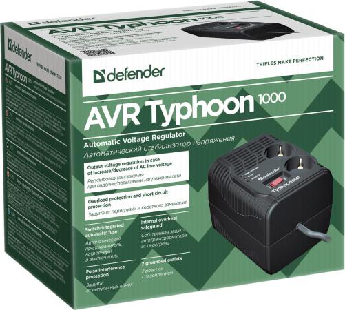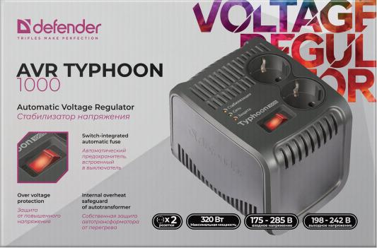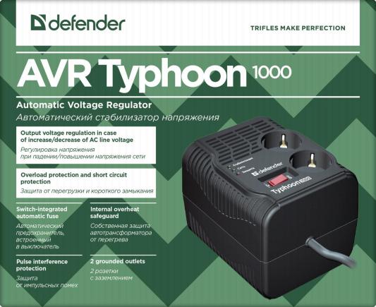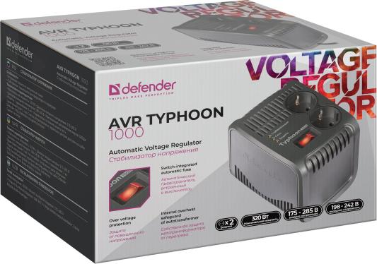 Стабилизатор напряжения Defender AVR Typhoon 1000 2 розетки 0.6 м 99033