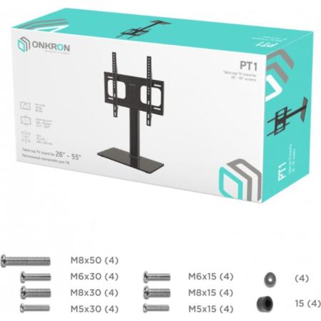 ДополнительноНастольная подставка ONKRON PT1 предназначена для ТВ с диагональю от 26 до 55 дюймов (66,04 - 139,07 см).