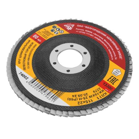 Круг лепестковый торцевой КЛТ-1, зернистость Р60(25Н), 115 х 22,2 мм, (БАЗ)// Россия