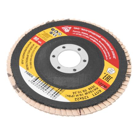 Круг лепестковый торцевой КЛТ-1, зернистость Р80(16Н), 125 х 22,2 мм, (БАЗ)// Россия