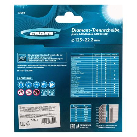 Диск алмазный ф125х22,2мм, лазерная приварка сегментов, сухое резание // Gross