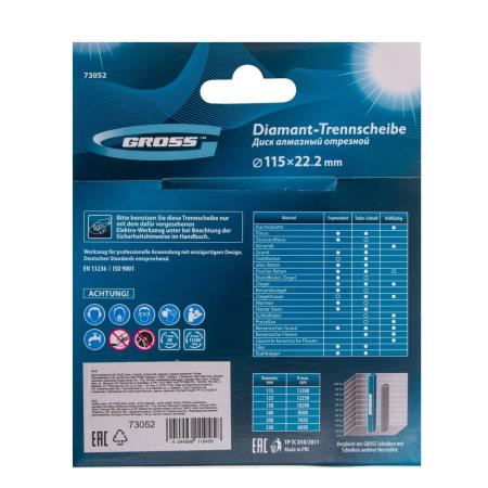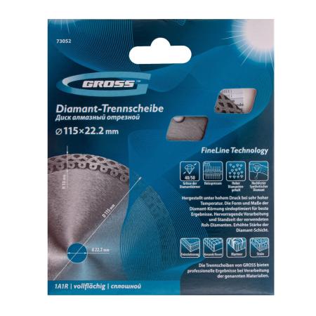 Диск алмазный ф115х22,2мм, тонкий, сплошной (Jaguar), мокрое резание // Gross