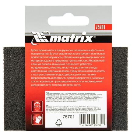 Губка для шлифования, 100 х 70 х 25 мм, мягкая, P60// Matrix