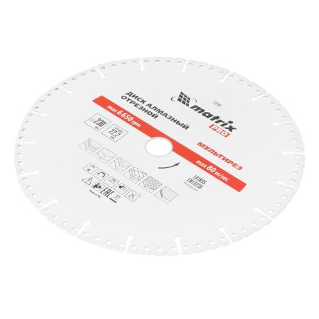 Диск алмазный отрезной "Мультирез" ф230 х 22,2мм, сухой/мокрый рез, PRO// Matrix