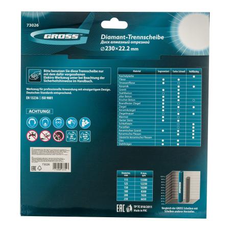 Диск алмазный ф230х22,2мм, турбо-сегментный, сухое резание // Gross