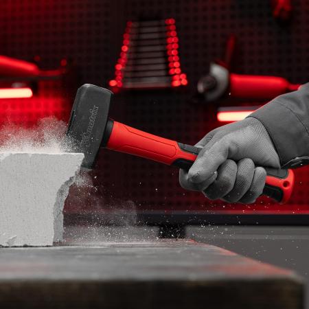 Фибергласовая обрезиненная рукоятка амортизирует отдачу при ударе.