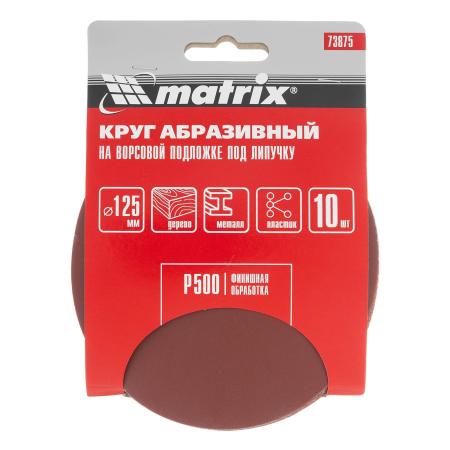 Круг абразивный на ворсовой подложке под "липучку", P 500, 125 мм, 10 шт.// Matrix