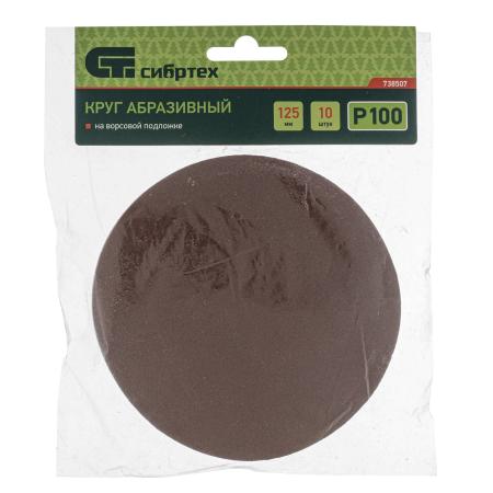 Круг абразивный на ворсовой подложке под "липучку", P 100, 125 мм, 10 шт.// Сибртех