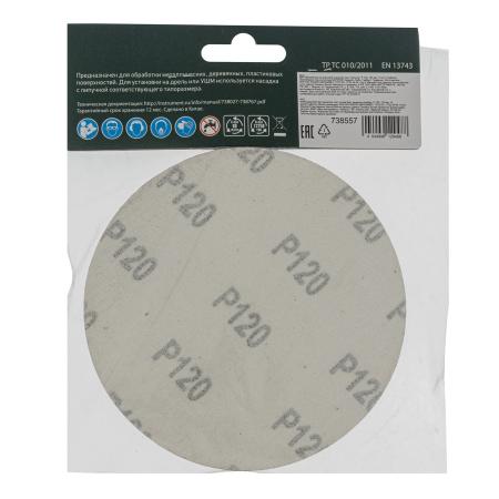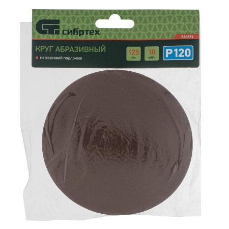 Круг абразивный на ворсовой подложке под "липучку", P 120, 125 мм, 10 шт.// Сибртех