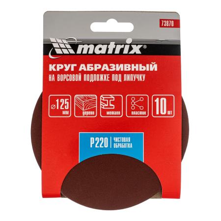 Круг абразивный на ворсовой подложке под "липучку", P 220, 125 мм, 10 шт.// Matrix