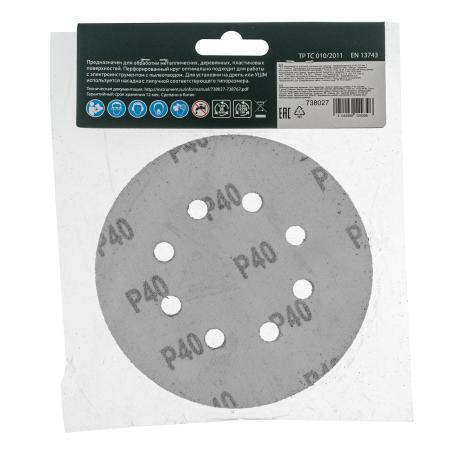 Круг абразивный на ворсовой подложке под "липучку", перфорированный, P 40, 125 мм, 5 шт.// Сибртех