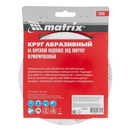 Круг абразивный на ворсовой подложке под "липучку", перфорированный, P 100, 150 мм, 5 шт.// Matrix
