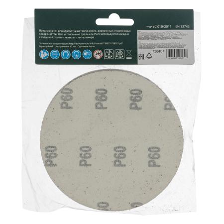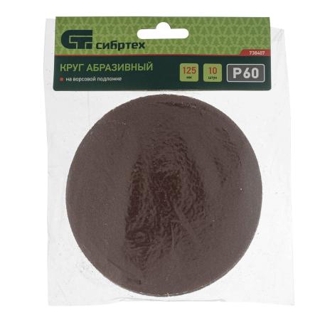 Круг абразивный на ворсовой подложке под "липучку", P 60, 125 мм, 10 шт.// Сибртех
