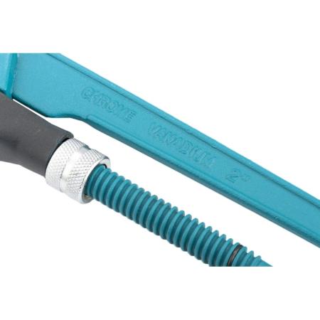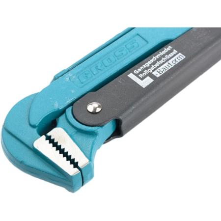 Прочие особенности и свойстваКлюч трубный рычажный типа L усиленной конструкции, применяется при повышенных нагрузках. Предназначен для захватывания и вращения труб и соединительных частей трубопроводов. Изготовлен из высококачественной хромованадиевой стали. Имеет порошковое антикоррозийное покрытие. Губки дополнительно закалены токами высокой частоты до твердости 57–60 HRС. Прогрессивная форма зуба с наклоном против направления вращения обеспечивает самоблокируемый захват деталей. Верхняя ручка имеет выштампованный Т-образный профиль. Регулировочная гайка снабжена стопорным кольцом.