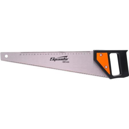 Ножовка по дереву, 400 мм, 5-6 TPI, каленый зуб, линейка, пластиковая рукоятка// Sparta