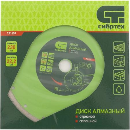 Диск алмазный отрезной сплошной, 230 х 22,2 мм, мокрая резка// Сибртех