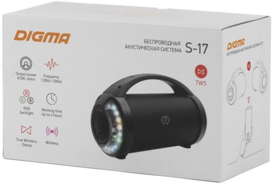 Колонка порт. Digma S-17 черный 8.5W 1.0 BT/3.5Jack/USB 10м 1500mAh