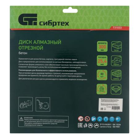 Диск алмазный ф300 х 25,4 мм, "Бетон", сухой/мокрый рез// Сибртех