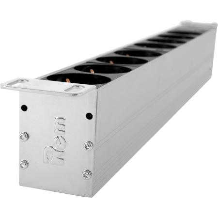Дополнительно *Блок силовых розеток имеет шесть портов стандарта Schuko, выполнен в анодированном алюминиевом корпусе. Розетки расположены горизонтально, для удобного подсоединения коленчатых штекеров. На лицевой части блока установлен автомат. Вход кабеля питания - клемная колодка. Кабель питания в комплект поставки не входит. Совместим со всеми линейками 19” монтажного оборудования. Поставляется в индивидуальной упаковке с комплектом крепежа. Выполнен в системе несущих конструкций 482,6 мм по ГОСТ 28601.2 (19-дюймовые конструктивы по МЭК 297).