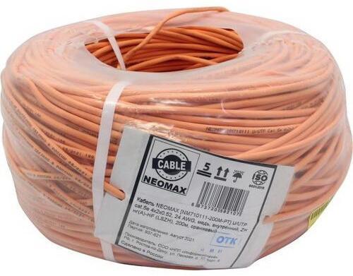 Кабель NEOMAX [NM710111] U/UTP cat.5e 4x2x0.52 (24AWG) Медь, ZH нг(А)-HF внутренний (305м), оранжевый