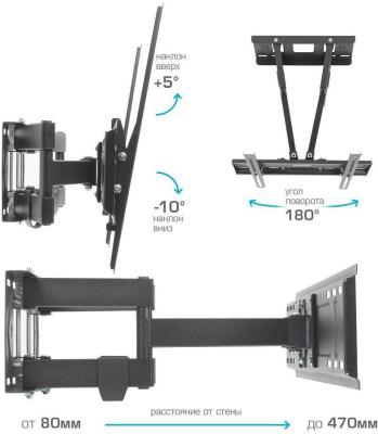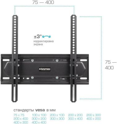 Кронштейн для телевизора Kromax PIXIS-L-2 черный 26"-55" макс.50кг настенный поворот и наклон