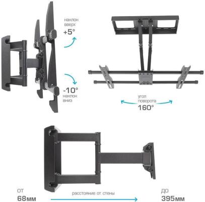 Кронштейн для телевизора Kromax GALACTIC-57 черный 32"-75" макс.60кг настенный поворотно-выдвижной и наклонный