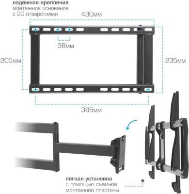 Кронштейн для телевизора Kromax GALACTIC-61 черный 32"-90" макс.45кг настенный поворот и наклон