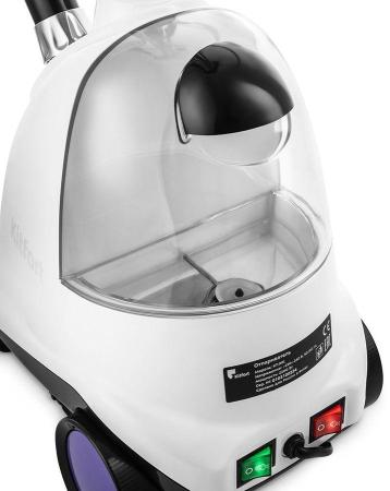 Прочие особенности и свойстваВертикальный отпариватель Kitfort КТ-991 позволяет прогладить любые вещи и изделия из текстиля даже со сложной текстурой, которые обычно не гладят. Кроме глажки и отпаривания он обрабатывает вещи мощной струёй горячего пара, проводя чистку и дезинфекцию.