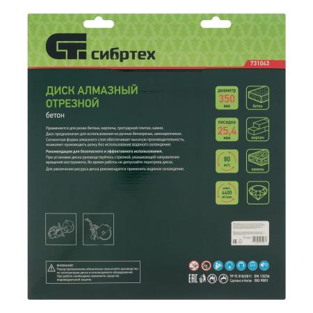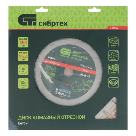 Диск алмазный ф350 х 25,4 мм, "Бетон",сухой/мокрый рез// Сибртех