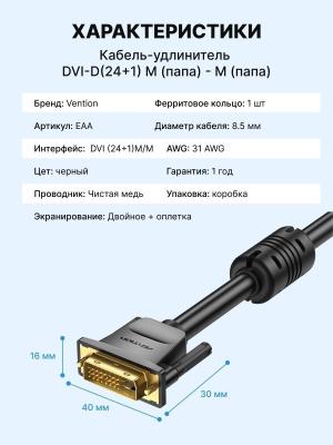 Кабель Vention DVI-D Dual link 25M/25M с ферритовым фильтром - 1.5м.