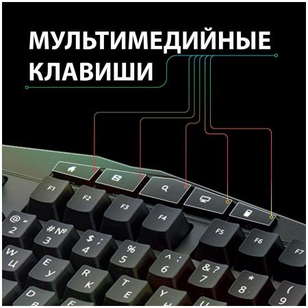 Клавиатура проводная игровая SONNEN Q9M, USB, 104 клавиши + 10 мультимедийных, RGB, черная, 513511
