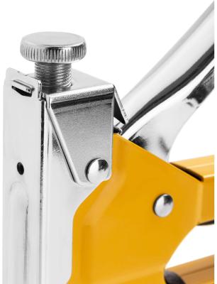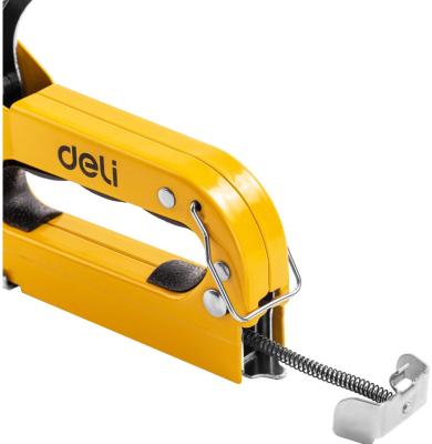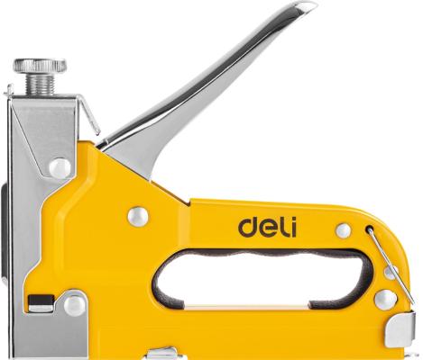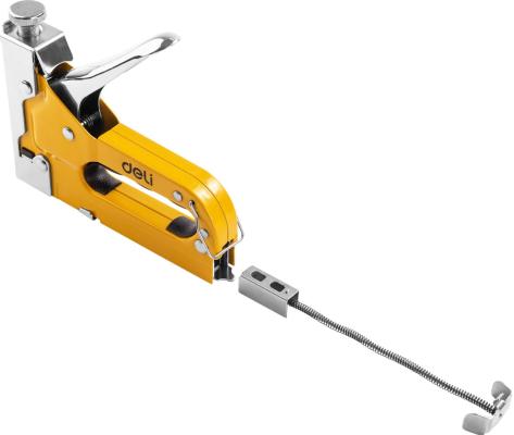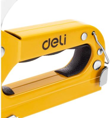 Прочие особенности и свойстваМебельный степлер DELI DL238104 98417 используется во время столярных работ для закрепления материала из гипсокартона, пластика, ДСП, текстиля, кожи и т.п. к другим поверхностям. Степлер обладает функцией регулировки силы удара, что позволяет оптимально работать с широким спектром материалов. Подходит для работы со скобами типов D/U/T. Степлер имеет прочный металлический корпус, что обеспечивает долговечность и надежность.
