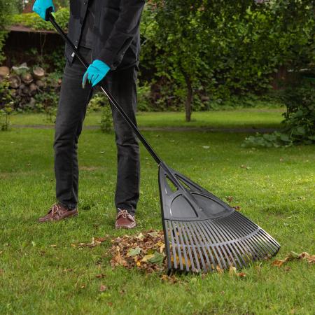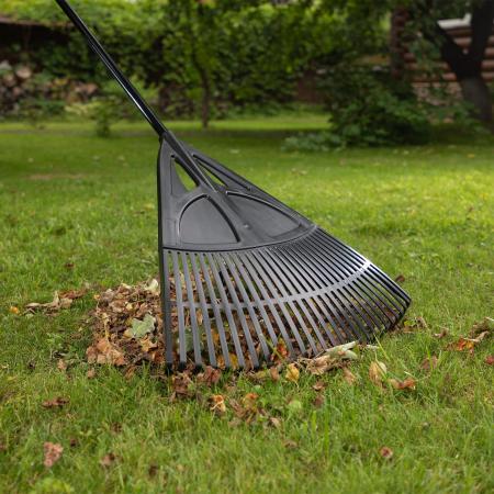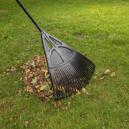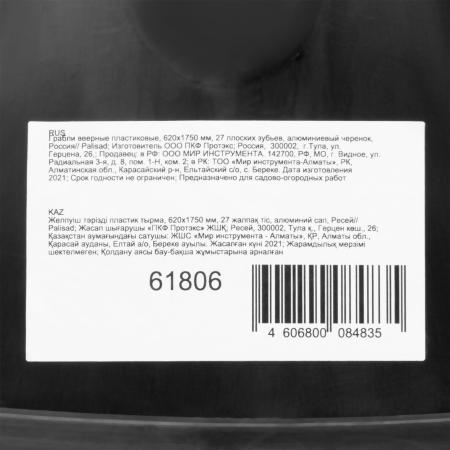 Грабли веерные пластиковые, 620х1750 мм, 27 плоских зубьев, алюминиевый черенок, Россия// Palisad