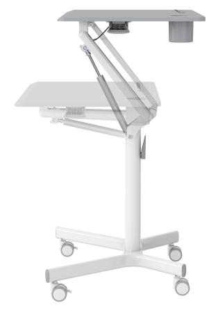 Прочие особенностиПодъемный механизм плавно опускает и поднимает столешницу, можно остановить в любом положении. Управление при помощи одного рычага. Наличие 4 колес обеспечивает маневренность, 2 колеса со стопором, для придания устойчивости.