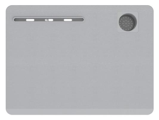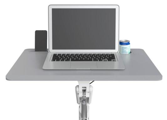 Крючок для сумки, углубление для пишущих принадлежностей и планшета. Углубление для кружки или бутылки с водой.