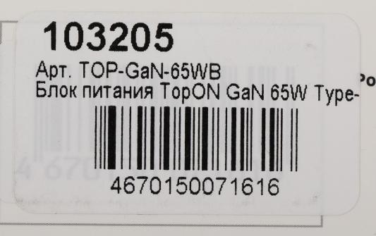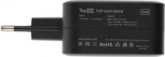 Сетевое зарядное устройство TopON GaN 65W USB + Type-C черный