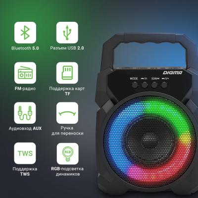 Портативная колонка Digma D-PS1500, 10Вт, черный [sp1500b]