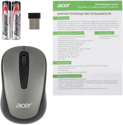 Мышь Acer OMR134, оптическая, беспроводная, USB, серый [zl.mceee.01h]