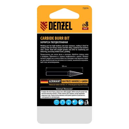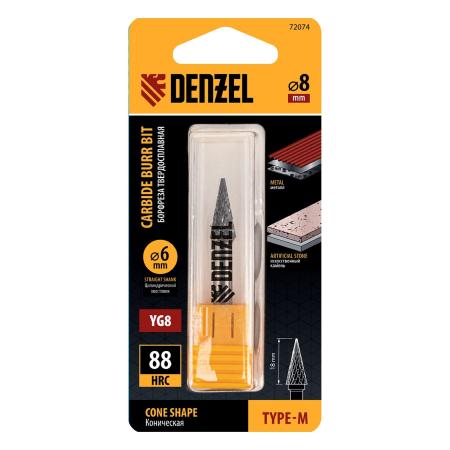 Борфреза по металлу твердосплавная, коническая, тип-M, 8 мм// Denzel