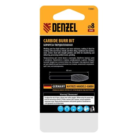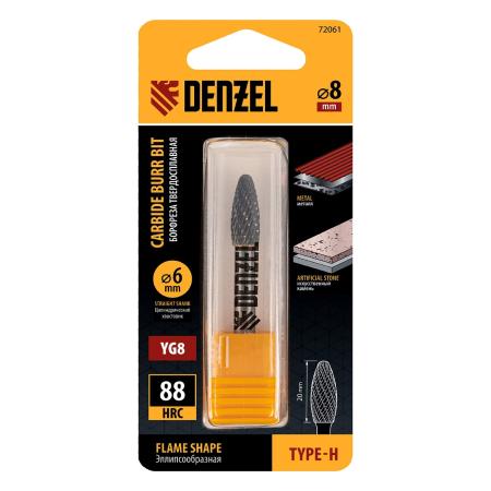 Борфреза по металлу твердосплавная, элипсообразная, тип-H, 8 мм// Denzel