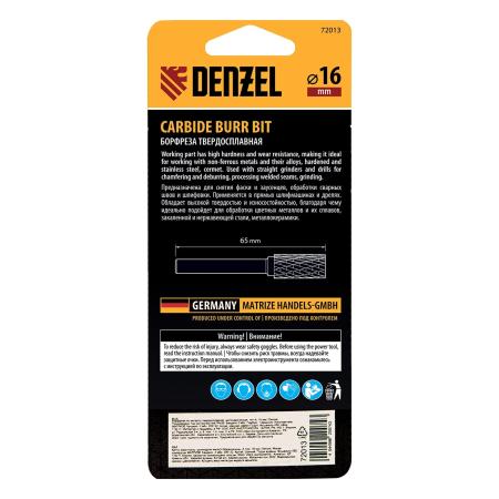 Борфреза по металлу твердосплавная, цилиндрическая, тип-А, 16 мм// Denzel