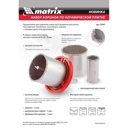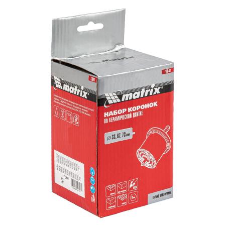 Набор коронок по керамической плитке, 33-67-73 мм, 6-гранный хвостовик// Matrix