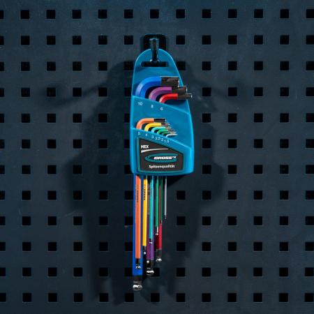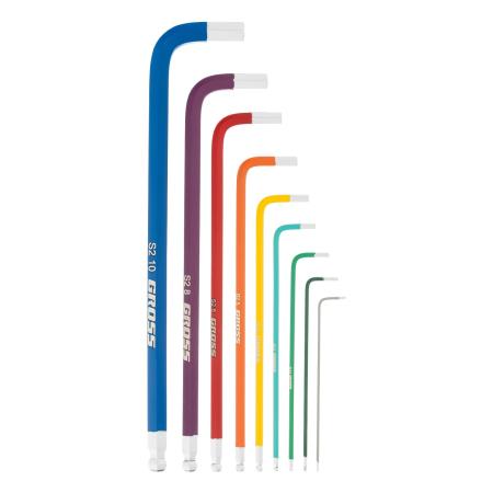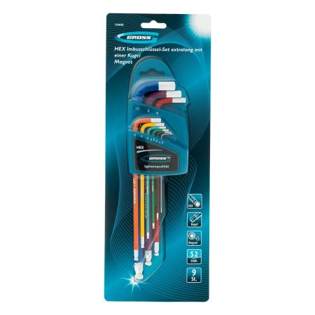 Набор ключей имбусовых HEX, 1,5–10 мм, S2, 9 шт., магнит, экстра-длин. с шаром, хром/краска// Gross