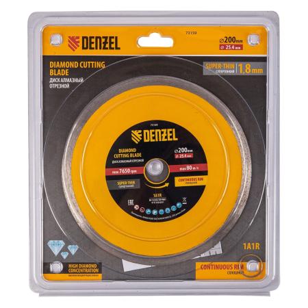 Диск алмазный сплошной, супертонкий, 200 х 25,4 мм, горячее прессование, мокрое резание// Denzel