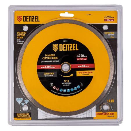 Диск алмазный сплошной, супертонкий, 250 х 25,4 мм, горячее прессование, мокрое резание// Denzel