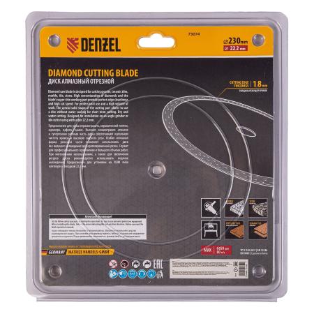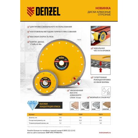 Диск алмазный отрезной 230 х 22,2мм, сплошной, супертонкий, горячий пресс, сухой/мокрый рез// Denzel