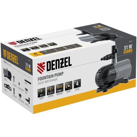 Насос фонтанный FNP31-24, 31 Вт, подъем 2,4 м, 1500 л/ч, колокольчик/2 каскада/гейзер// Denzel