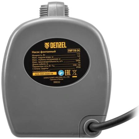 Насос фонтанный FNP110-34, 112 Вт, подъем 3,4 м, 3400 л/ч, колокольчик/каскад/гейзер// Denzel